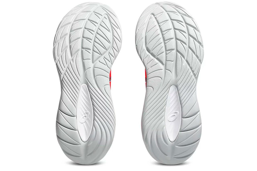 La parte superior está diseñada con un mesh técnico engineered, que asegura transpirabilidad, ligereza y un ajuste cómodo, permitiendo un flujo de aire óptimo durante las carreras. Incluye detalles como la lengüeta "Comfy", más ligera y acolchada para un mejor soporte, y un tirador elástico en el talón inspirado en la serie Nimbus, facilitando el calce y ajustando el talón a la perfección.