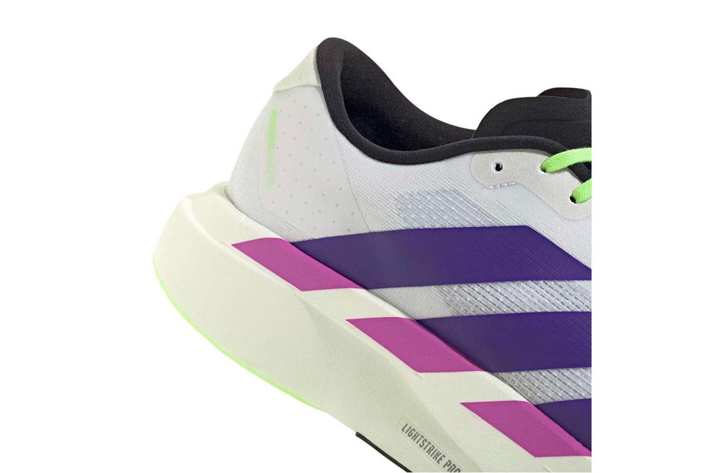 Combinando la tecnología Adizero con un look atrevido y exclusivo que evoca la estética de competición, esta silueta integra la rapidez en todos los aspectos de la vida. La mediasuela de espuma LIGHTSTRIKE PRO proporciona mayor respuesta, amortiguación y comodidad a tu zancada para conseguir un retorno de energía excepcional.