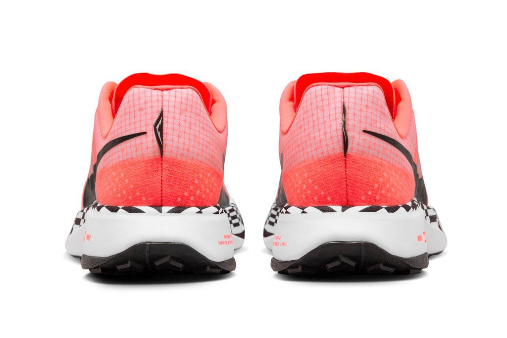 Por primera vez en Nike Trail Running, hemos introducido una placa de carbono Flyplate, que se combina con espuma ZoomX y un mediasuela envuelta en tejido Knit, para ofrecer energía, propulsión y elasticidad. Ayudan a mantener la frescura para seguir superando los límites de velocidad, tanto en el primer kilómetro como en el último.