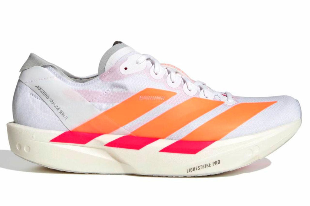 ADIDAS ADIZERO TAKUMI SEN: DESIGNED FOR SHORTER DISTANCES, THEY HAVE TO THEIR CREDITS A HARD-EARNED FAME, FOR THE EFFECTIVENESS OF THEIR ENERGY RETURN, DYNAMISM AND LIGHTNESS. THEY HAVE THE SAME TECHNOLOGY AS THE ADIOS PRO 2, BUT IN A LOWER MIDSOLE HEIGHT WHICH MAKES THE PERFORMANCE BETTER OVER SHORTER DISTANCES.